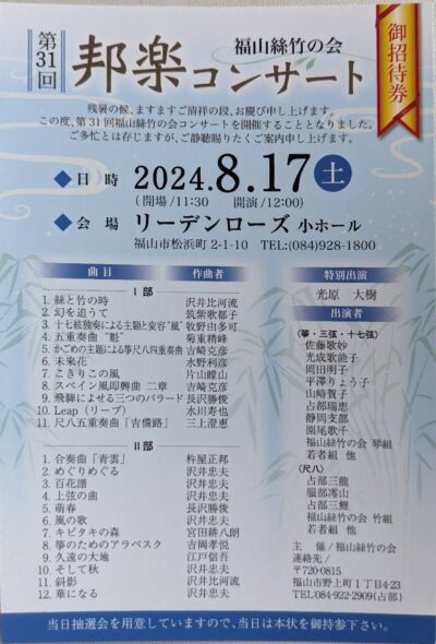 いよいよ明日が本番です 皆様お盆はどのようにお過ごしでしたか? 最近では、コロナもまた流行りつつあり体調管理が大変になってきましたね。 先日、社中では最後の合奏練習が行われました。 みんな暑い中ではありましたが最後の日まで頑張って練習してきました。 いよいよ明日が本番!! 皆様に良い演奏ができるよう最後まで頑張りますので是非聞きに来てください! 暑い日が続きますが体調には気を付けてお過ごしください。