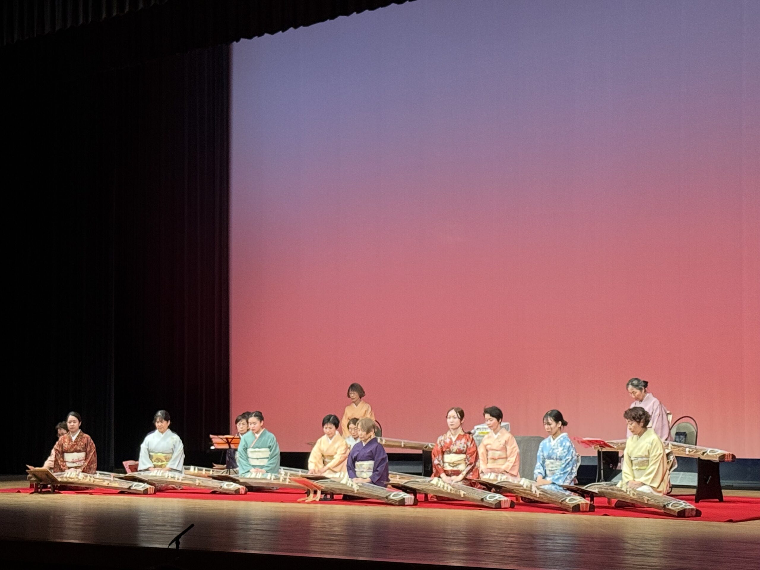 朗読劇「麗しき 神辺の歴史」に出演しました! 2月2日(日)先日、神辺文化会館大ホールで行われた朗読劇に、いちえの会、岡田明子箏教室合同16名で、参加しました。劇中、野村峰山作曲「雅びの調べ」に二首の和歌を織り交ぜての演奏をしました。多くのお客様に聴いて頂き、また、他の社中の方との合同演奏で、合奏の良い勉強をさせていただきました。 また、一つ、経験を積んで、ステップアップできた事と思います。 次は、5月31日(土)絲竹の会演奏会に向けて、社中一丸となってしっかりお稽古を積んでいきましょうね。 https://koto-okada.com/wp-content/uploads/2025/02/神辺 動画.mp4