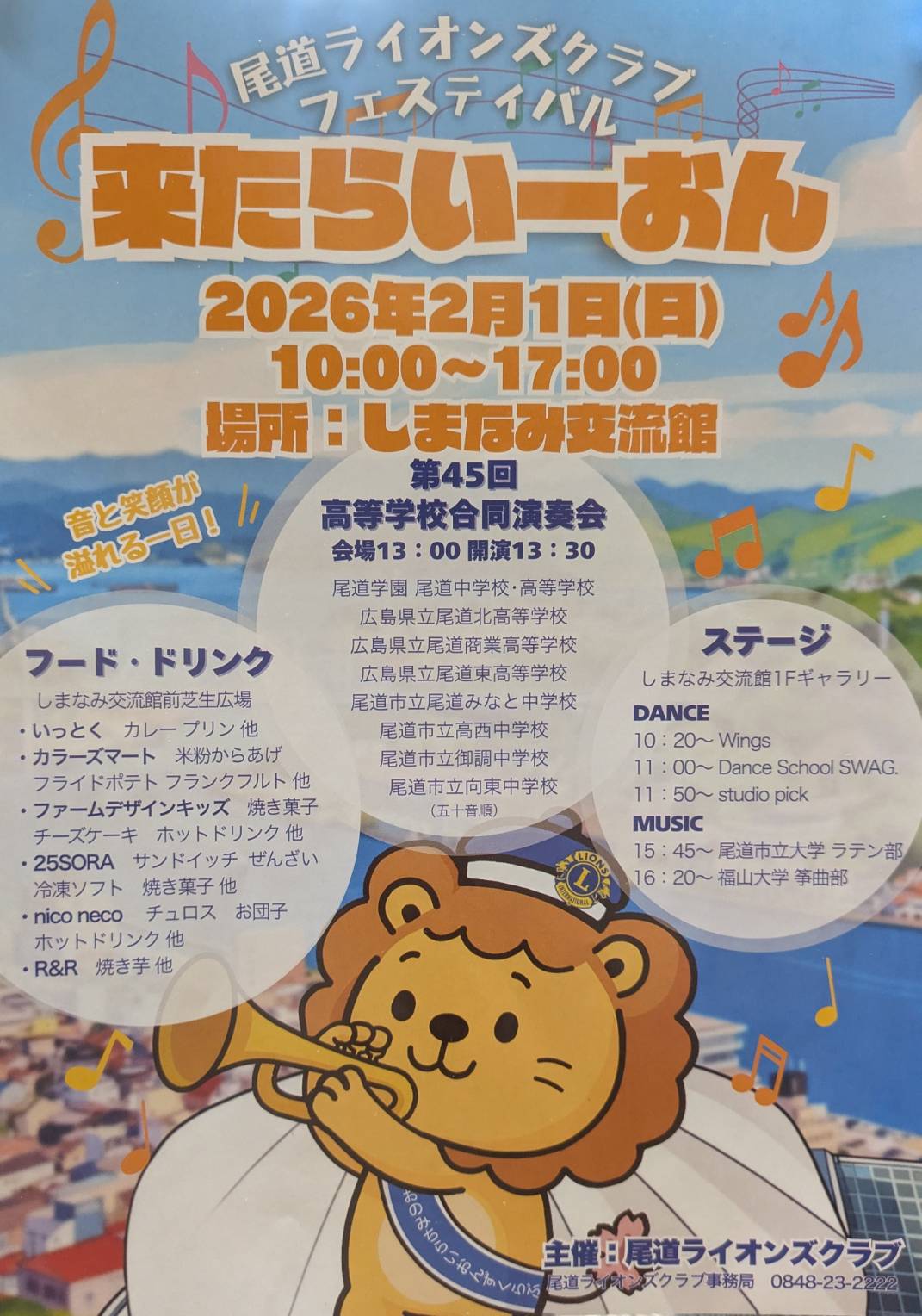 まずは、2月1日(日)尾道ライオンズクラブ主催で、尾道のしまなみ交流館でイベントがあります。